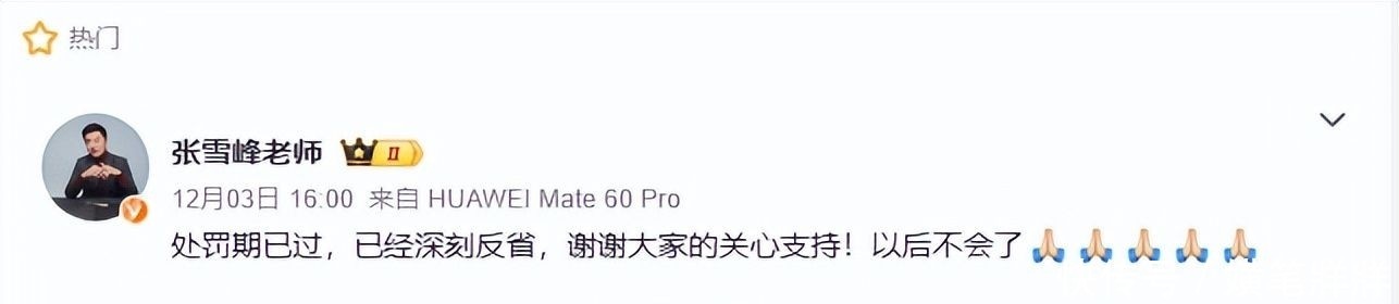 通报发布后,他迅速通过微博表态:“处罚期已结束,已深刻反思,今后绝不再犯。”