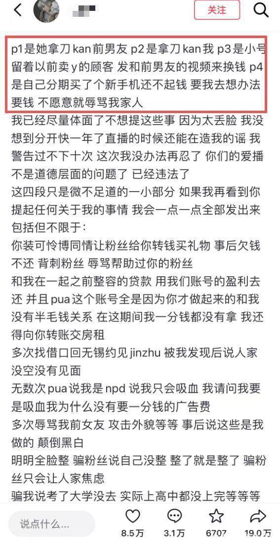 据男子描述,他与前女友已经分手快一年,没想到对方仍在直播平台上抹黑他,编造故事博取同情,以此诱导粉丝送礼物、打赏。他原本不打算再提这段感情,但持续被造谣,最终选择公开回应。